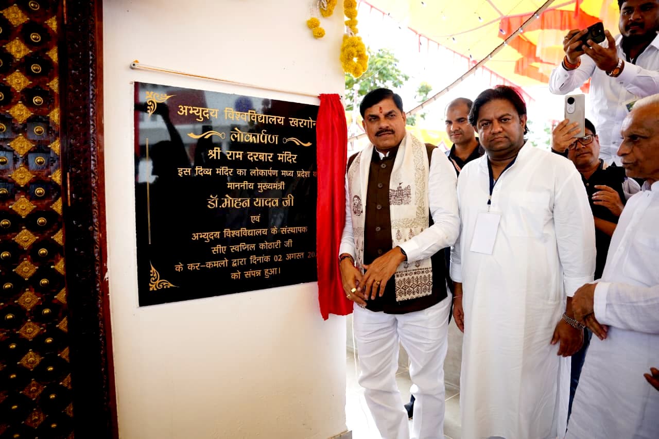 मुख्यमंत्री डॉ. यादव ने कहा – “छात्रों के लिए भगवान श्रीराम का जीवन ही अभ्युदय की अवस्था है।” अभ्युदय विश्वविद्यालय का उद्घाटन और श्रीराम दरबार मंदिर का लोकार्पण मुख्यमंत्री डॉ. यादव द्वारा किया गया। छात्रों से संवाद करते हुए उन्होंने श्रीराम के जीवन से प्रेरणा लेने, सीमित संसाधनों में बड़ी उपलब्धियों की सीख और प्रकृति से प्रेम की बात कही। मुख्यमंत्री ने बताया: यह विश्वविद्यालय टंट्या मामा विश्वविद्यालय के बाद निमाड़ क्षेत्र का दूसरा उच्च शिक्षण संस्थान है, जिसकी पहल उन्होंने उच्च शिक्षा मंत्री रहते हुए की थी। रेनेसां समूह द्वारा स्थापित इस विश्वविद्यालय को लेकर संस्थापक स्वप्निल कोठारी ने कहा कि यह डॉ. यादव की प्रेरणा का परिणाम है।