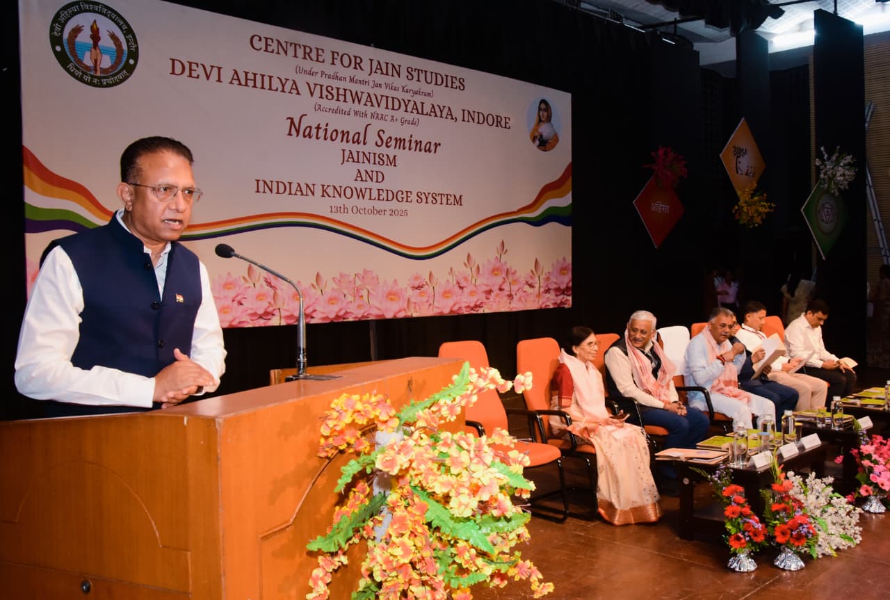 इंदौर, 14 अक्टूबर 2025। देवी अहिल्या विश्वविद्यालय के सेंटर फॉर जैन स्टडीज (Center for Jain Studies) द्वारा “जैनिज्म और भारतीय ज्ञान परम्परा” विषय पर एक दिवसीय राष्ट्रीय संगोष्ठी का आयोजन सोमवार को खंडवा रोड स्थित विश्वविद्यालय के राजमाता देवी ऑडिटोरियम में गरिमामय वातावरण में किया गया।